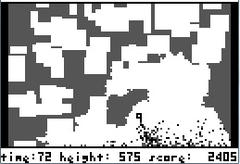 スペースキーかzキー辺りを押すと四角い自機から何かを大量に噴出してその反動で自機が動く。これを利用してなるべく上に進むのが目的。画面上の灰色の部分に当たるか下と左右の端にぶつかると即ゲームオーバー。また噴出することでその方向にある障害物を破壊することも出来て、途中のチェックポイント等は壊して進む必要がある。