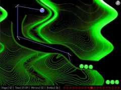 クリックで鏡を設置してレーザーを反射させて、玉にそれが当たると消える。緑の玉を全て消してからゴールの場所に光を当てればステージクリア。鏡はマウスを動かすことで角度を変えることが出来る。ぐりぐりと動かしてバババッと玉を壊すのはなかなか面白い。途中のステージからは赤いレーザーも出てきて、違う色の玉を壊すと残り時間が減る。