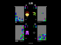 いわゆる某ぷよぷよで、本家との違いは列が7あることとマージンにあたるつよさが1回消すごとに増えてそれが数字として見えることぐらいかな。操作は主に矢印キーで移動、スペースキーで回転。通常モードではタイプの異なる6人の敵を倒せばクリアになる。