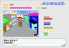 基本はアドベンチャーって感じで2択の選択肢を選んでストーリーを進めていく。一部では戦闘があり、こちらも2択の選択肢を選んで戦う。キャラのステータスは最初に名前を入力した際にその名前によって決定される。最終的にハチミツを入手すればクリア、体力が無くなったり誤った選択肢を選ぶとゲームオーバーになる。