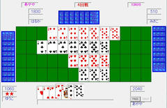 自分対COM3人の七ならべで、基本のルールはまぁ普通って感じかな。ジョーカーは挟んで置くとそのカードを持っている人が自動で置くシステムで残ってもペナルティ無し、またトンネルがあってAかKを置くと次はそれに繋がる逆順にしかカードを置けなくなる。順位によって点数が付いて計10回の合計得点を競う。