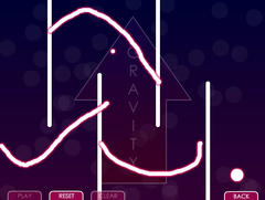 小さい光の玉を大きい光の場所まで導けばステージクリア。画面外に出るとやり直し。操作はまずフリーハンドでステージ内に線を引き、スタートを押すと玉が重力で動き出す。途中でクリックするとそのたびに重力が入れ替わる。