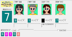 操作はマウスクリックで対戦相手4人を選んでスタート。基本はいわゆるUNOで、現在のカードと色か数字が一致するカードがあればそれを出すことが出来る。出すのが無い場合は適当なカードをクリックでドロー、それが出せれば即出せる。カードが残り1枚になる場合は右のCard Oneをクリック、これを忘れるとペナルティで2枚引かされる。誰か1人があがると終了し、負けたプレイヤーは持っているカードの点数分プラスになる。最初に指定した点数に誰かが達した時点で最も点数の低いプレイヤーが優勝。