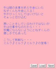 vectorにはRPGで登録されていたので期待してプレイしたが実際はテキストを読んで選択肢を選ぶだけのゲーム。雰囲気は悪くないと思うが全体的に子供向けと言う感じでストーリー的にも特に面白い部分は無く、まぁ評価も上がらずと。規模が小さいのは個人的には幸いだったかな。一応エンディングは7通り全部見ました。