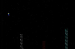 操作はマウスクリックで、左を押しっぱなしで急下降、右を押しっぱなしでエネルギーを消費して上昇。右に進みつつ自由落下するキャラクターを上手く柱から柱に跳び移らせるのが目的。柱に横から当たるか下に落ちるとゲームオーバー。