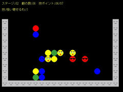 操作は矢印キーで移動、zとxキーで回転。同じ色を縦か横に直線で4つ並べるとそれが消える。これでステージ内の敵を全て消せばクリア。またステージ2以降は技を使うことも出来て、cキーで技を選択しスペースキーで技ポイントを消費して使用する。