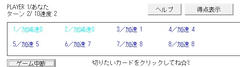 COM2人との対戦で、既定のターンが終わった時点でゴール地点を超えずに近づいた人がたぶん勝ち。ゲーム中は8つ表示されているコマンド(カード?)を1つ選ぶと加速したり減速したりする。速度を調整してゴール直前を目指すというアイディア自体は悪くないかもしれないが、このゲームはクリックした部分の数字と結果が何故かズレるのと敵が弱すぎるため楽しめず。1996年公開と古いゲームなので環境のせいもあったりするんですかね・・・?
