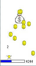 左右キーで自キャラを動かして袋から降ってくるコインを取る。連続で取るとコンボとなって得点が一気に増える。まぁコンボで一気にハイスコアを狙うという感覚は悪くないけど、やはりミニゲームですぐ終わっちゃうと言うことで物足りないですかねぇ。はい。自分のハイスコアは22725点でした。