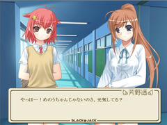 操作はマウスクリック。アドベンチャーパートとブラックジャック風のゲーム部分を交互に繰り返して進んでいく。ルールは割と特殊。勝負は1対1でまず山札をクリックでカードを引く。これ以上引きたくない時はSTAND。数字の合計(J,Q,Kは11~13で計算)が22以上になるとバーストで説明書にある反射ダメージの分自分のHPが減る。バーストしていない状態では数字の大きい方が勝ちで攻撃力の分だけ相手のHPが減る。先に相手のHPをゼロにすると勝ち。
