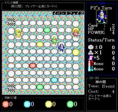 難易度は普通。敵はtrapを仕掛けるマスがランダム等それほど頭は良くないが、やはりすごろく自体が運ゲーなので勝つには運が絡む。特にこのゲームは単純なサイコロだけでなくその後のボーナス(?)もランダム、どのカードを引くかもランダム、一部のカードやイベントの効果もランダム、さらにゴールにはぴったり止まらないといけない等面倒な部分が多いんだよなぁ。