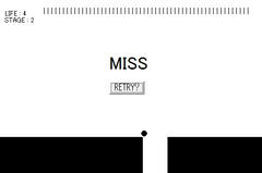 難易度は普通。上の目盛りである程度測れるとは言え画像の通りギリギリ引っかかるような位置でも失敗扱いなので結構大変。ライフの数とステージ数のバランスなんかは悪くないかな。ちょうどイライラする手前でクリアできるぐらいというか。ただ面白さと言う点では微妙。んー、ハイスコアを狙う感じの方が繰り返しプレイ出来る分面白くなったかな?わからんけど。