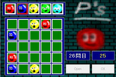 5×5のステージ内に配置されたボールの色と場所を記憶し、その通りに配置するのが目的。操作はマウスクリックでOpenで手本が示され、消えた後に上から色を指定してからステージ内のマスをクリックで配置。一度でも間違えると即ゲームオーバーとなり、進んだステージ数が記録される。