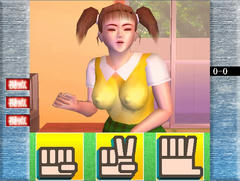 操作はマウスで女の子のタイミングに合わせてじゃんけんの手を出し、その後左右の矢印を出して一致した場合はじゃんけんで勝っていた方に勝ちが付く。5回先に勝った方が勝利。このゲームは女の子のグラフィックが・・・、まぁやはり下品というか、いや3Dで動くキャラクターのタイミングに合わせてあっち向いてほいをプレイするという部分は良いんだけど、んー・・・。まぁ好みの問題ですかね~。