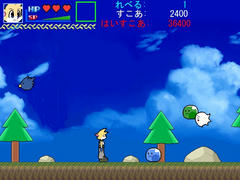 操作は左右キーで移動、zキーで前方にナイフ投げ、xキーでジャンプ、宝箱を取ってcキーでSPを消費してスキル発動。クリアの概念は無く、3回攻撃を受けるとゲームオーバーでその時点でのスコアが記録される。