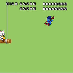 スペースキーを押しっぱなしにすると猫の乗った丸太が左に動き、離すと右に振れる。この右への動きを使って落ちてくるモグラに当てるのが目的。当たるとスコアが増え、1回でもモグラが下に落ちるとゲームオーバーになる。