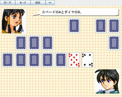 基本はいわゆる神経衰弱で、トランプを2枚めくり同じ数字ならそれをゲットできる。最終的に取った枚数が多い方が勝ち。まぁ一応遊べる出来にはなっているけど、32枚固定で敵の強さも1つ、成績記録機能も無く勝っても負けても反応が同じ等物足りないのは間違いない。ミニゲームにしてももう少し作りこんでもらいたかったかな。