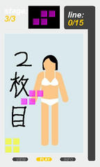 操作は左右と下キーで移動、上キーで強制落下、zキーで回転。基本のルールはいわゆるテトリスで、ブロックを積んでラインを揃えるとそれが消える。右上のlineの数字を満たすとステージが進み背景の画像も変わる。