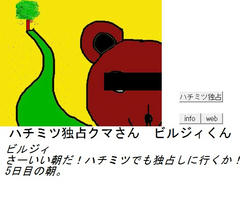 操作はマウスで、ハチミツ独占のボタンや画面をクリックすると適当に展開が進んで次の日になる。まぁ本当にクリックだけでゲーム性も無いというかゲームかどうかも怪しいぐらいだけど、一応回数によってパスワードが表示されたりするのである程度プレイする価値は・・・、いやしかし全体的にクオリティも低いしやはりダメか。はい。おすすめはしません。