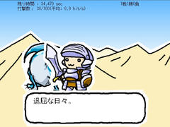 操作はマウスで、戦闘中はクリック連打で攻撃、それ以外は放置で勝手に話が進む。クリックでイベントスキップも可能。このゲームは手応えが無いのが残念ですかねぇ。一応制限時間内に既定の連打数で勝利ということにはなってるんだけど、その目標が低すぎる。グラフィックや雰囲気は悪くは無いんだけどね、さすがにこれで楽しむのは難しいか。せめてクリア後に表示されるタイムが一定以内で追加要素とかならもう少しは遊べたかもしれないが・・・。
