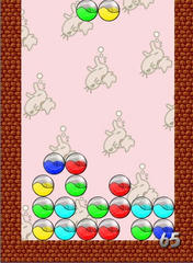 難易度は高め。転がる動きが厄介なこともあり狙って消すのは難しい。アイディア自体は良く出来てると思うんだけど、ちょっと面倒すぎて爽快感が無い感じはしたかなぁ。最初は三色とかで消しやすくして進行に応じて徐々に色を増やすとか、その辺の工夫はあってもよかったと思う。あとハイスコアランキングとかね。元のシステムが面白いだけにこれだけで終わらせてしまうのはもったいないが・・・。