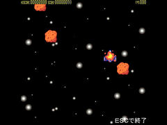 操作は矢印キーでの自機の移動のみで、とにかくひたすら隕石を避けていく。1回当たるとゲームオーバー。スコアは時間経過で増えてそれを狙うのも出来ないわけではないけど、レベルアップ等の変化もないしこれだけで楽しむのは厳しいかなぁ。あとは当たり判定が見た目より大きいため避けたつもりでぶつかったりするのも微妙。もう少し当たり判定を小さく、隕石は多くとしたほうがよかった気もする。