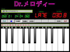 まずはFILEをクリックしてcyd7を選び、GAMEをクリックしてスタート。以降は画面上の光る鍵盤に対応するキーを押すとタイミングが判定されて曲が進む。成功数等に応じてスコアが増減し、一応ハイスコアみたいなものもあったりする。
