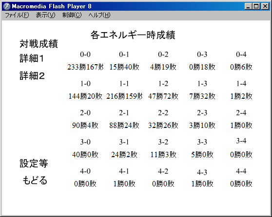 1000戦やろうと思ったけどさすがに飽きた(w)ので400戦。んー、やっぱりなんらかの楽しめる機能をつける必要はありそうね。