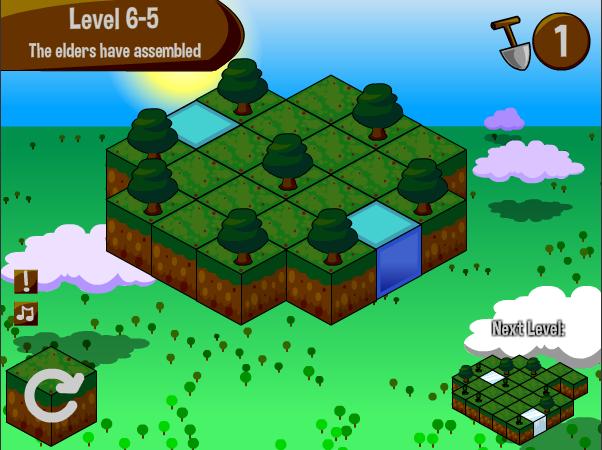 木をクリックすると水が広がり、それ以外のマスをクリックするとスコップで掘ったりする。スピーディーでサクサクプレイできるし、水がブワッと出る感覚はなかなかいいね。また中盤から出てくる氷や溶岩もなかなか良くできていてスコップに意外な使い方があったりするのも面白い。