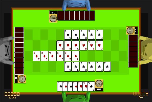 ルールはジョーカーあり、トンネルありのパス3回まで。敵は出せるカードがあればかならず出す思考らしくかなり弱いので、まぁ手ごたえは無いけど気持ちよくプレイできる。トランプ系のフラッシュゲームは結構転がってるけど暇つぶしとしてある程度長く遊べるのはこのゲームぐらいのような気がするなぁ。んー、雰囲気がいいのかねぇ。