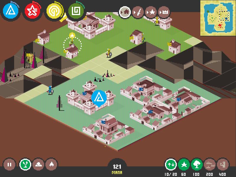 ポピュラスとかいうゲームのオマージュらしい。自分にできることは土地の上げ下げのほか、勝手に動く兵に対する大まかな指示と途中から手に入る天罰のような能力ぐらいだけど、だんだん勢力が拡大する感覚や敵陣を一気に攻め落とすのは楽しく、ついつい次の面もやりたくなってしまうような魅力がある。