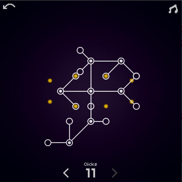 ロボットの腕のようなものを操作して黒丸をオレンジの光にあわせるゲーム。