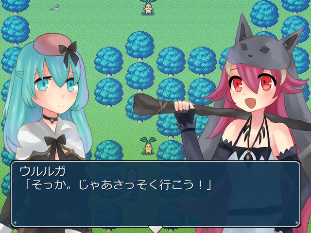 ウディタ製のRPGで操作はだいたい矢印キーで移動、z決定、xキャンセルとメニュー。戦闘はシンボルエンカウントのターン制で基本システムに近い感じ。2人固定のパーティーでダンジョンに出掛けるようなシナリオでキャラ同士の掛け合いも多め。雑魚戦では負けてもその場から再開できるがボス戦での全滅はゲームオーバーとなる。
