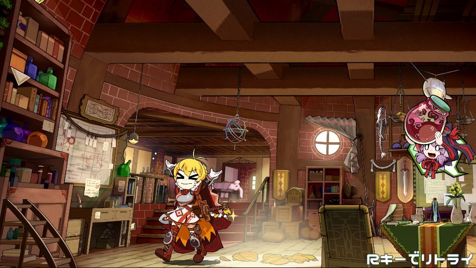 Unity製のゲームで操作はタイトル画面ではマウスクリックで決定、ゲーム中は左右キーで自機の移動、rキーでリトライ。左上から降ってくる薬瓶を自機を操作して右端に運んでいく。薬瓶が床に落ちるとミスで薬によっては特殊な効果が発生したりする。10個すべて運べればパーフェクトとなる。