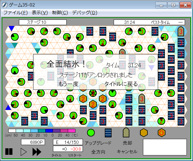 はい。作りかけのゲーム33と34をすっ飛ばしてゲーム35、見ての通り全面結氷!の続編です。まぁね、需要が無いのはわかってるけど作りたくなったので適当に作ってます。