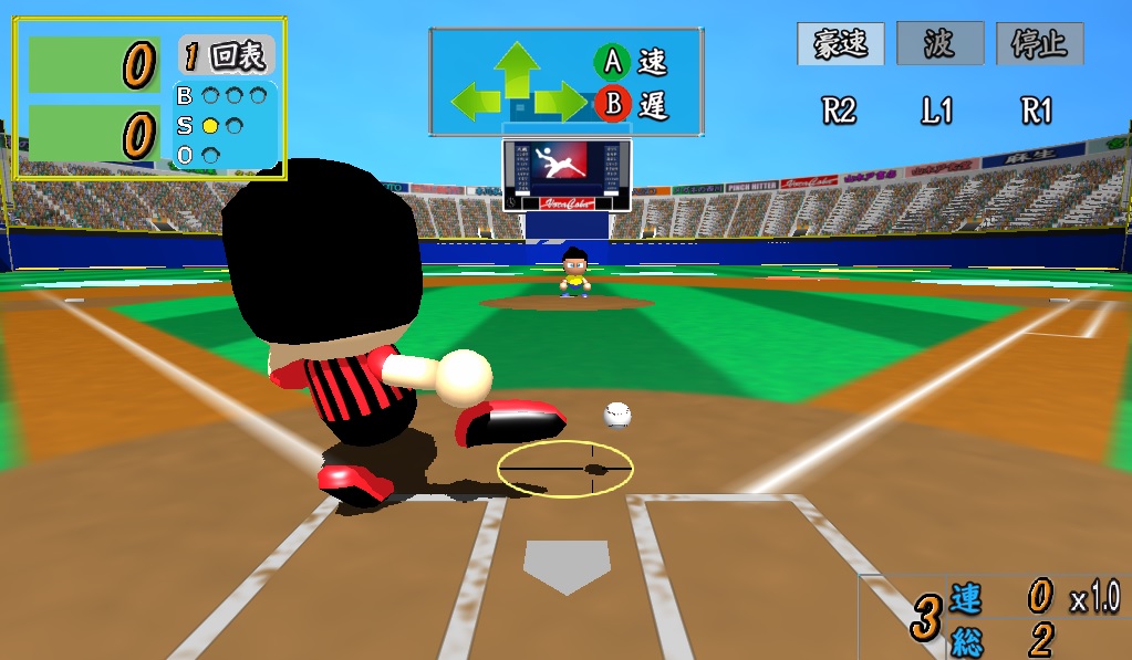 難易度は普通。敵が普通に強いのと変化球や魔球がわかりづらい(キーを押しても反応しないことがある?)ため結構難しい感じ。3Dのグラフィックとかは悪くは無いけどなんかCOMがズルい印象もあって個人的にはあまり楽しめなかったかなぁ。もうちょいわかりやすいシステム且つCOMの強さを選べる仕様とかにしてもらいたかった気がするよ。