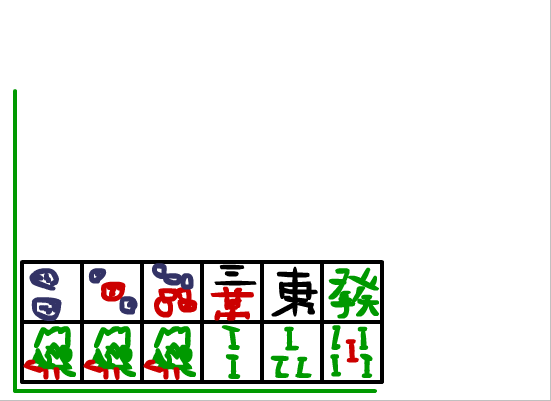 ところでこの画像ですが、見ての通り牌画が手書きになっています。なかなかいい素材が見つからなくてね~。まぁポップでキュート且つ完全使用フリーな牌画なんてそう転がってるものじゃないか。