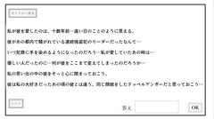 ティラノ製のゲームで操作はだいたいマウスクリックで決定と進行とか。ADV系の内容で基本はテキストを読み進めるのみとなっている。難易度は低く、話は3つとも1~2分とかで終わるはず。特にトリック等があるわけでもなく、ストーリーの出来はイマイチで個人的にはあまり楽しめなかったかなぁ。隠れた文字の答えは結局わからなかったです。はい。