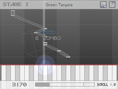 難易度は普通。マウスとスペースキーで演奏するというアイディアは独特でプレイの感触は割と良好。譜面ごとの難易度表記や合格ラインのバランスなども良く出来てると思う。またオート演奏機能が付いているのもうれしい点。曲数が6つだけというのはやや不満かなぁ。もうちょい増やした上で曲ごとにハイスコアを記録できるようにしてもらいたかったかも。あとは一度だけ★7の曲が出たような気がするんだが、その後何回かプレイしても再現できず結局一度も演奏できなかった。音ゲー特有の隠し要素嫌い。