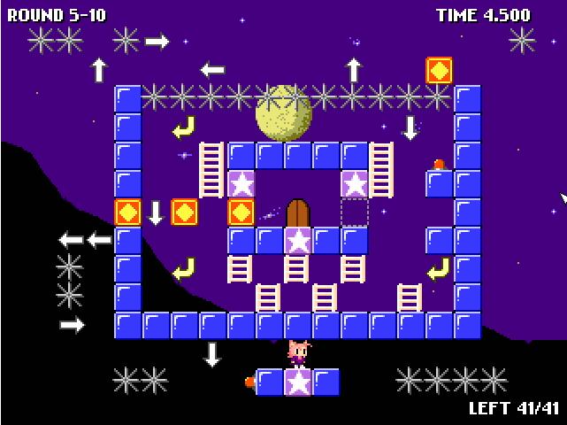 ネコっぽいキャラを操作して画面の青ブロックを全て赤ブロックに変えるゲーム。相当アクション寄りだけど動く仕掛けは無いしパズルとして悩むような場面も多いので分類はパズルで。