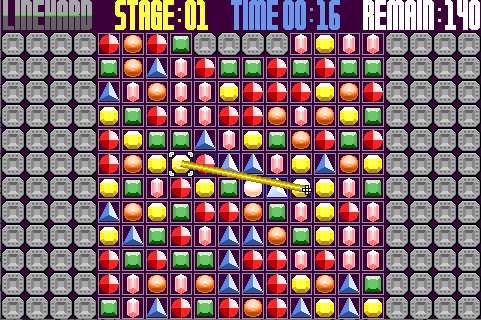 操作はマウスクリックで、まずRANDOMを選択して開始。ゲーム中は同じ色のブロックを2つ選択するとその間に線が引かれて選択したブロックと線上のブロックが消える(間違えた際は右クリックでキャンセル)。ただし線上に選択したのと同色のブロックか灰色のブロックがある場合は消せない。消すと重力でブロックが落下して上の空いたスペースは灰色のブロックで埋まる。灰色以外のブロックを全て消すとステージクリアで次に進むことができる。