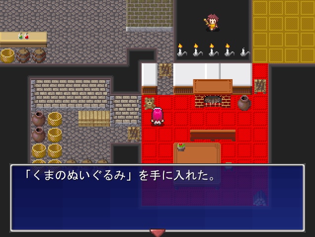 難易度は低め。初回に手探りでクリアするのは難しいかもしれないけど、HPには余裕があるので使えるアイテムを少し把握すれば問題ない程度。部屋は狭く探索する楽しみは薄いけど、まぁバランスは悪くないし短編の変わり種と考えれば普通に完成されてる感じですかね。1プレイ2~3分程度の手軽さで別のルートを試しやすいのも良い。キャラはこの作者の他のゲームと共通なので先にそちらをプレイしてからの方がより楽しめるかも。