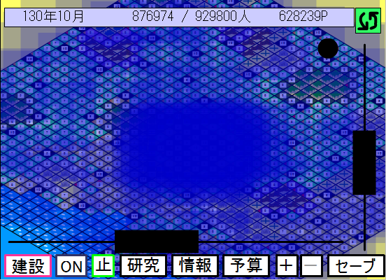 ボスを倒すところまでテストプレイ終了。人口が10万人超えてからの展開は今まで全くテストしていなかったので、バランス調整のために高レベル施設の数値を大幅に書き換えたりしてみた。やっぱり実際にやってみないとわからないよな~。あと前回200万人以上を目指すって書いたけど、100万人に達した時点でゲームクリアにして打ち切ることにしました。それに伴いマップ全体をフルに使っても120万人ぐらいしか養えないようにさらにバランスを調整。あとはレベルカンスト時の処理が不十分だったりして、なんだかんだで今回は修正点が多かった。